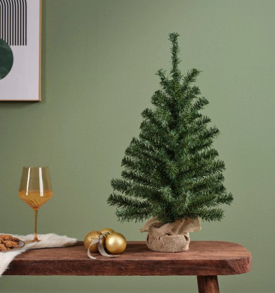 Its classic green foliage is full and lifelike, creating an authentic miniature Christmas tree feel.